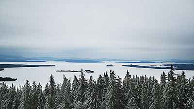 The climb up Kineo is for very experienced riders only. Once you start there is no backing out and some places will wreck your sled if you lose control. If you want to attempt that climb, the trail is behind the brown camp on the side of the mountain that the Moosehead River comes in. There is a fire tower on the top and the views, as I said, are awesome.